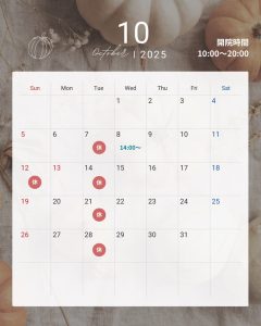 10月スケジュールのお知らせ(町田駅近く妊婦さんも通える治療院)